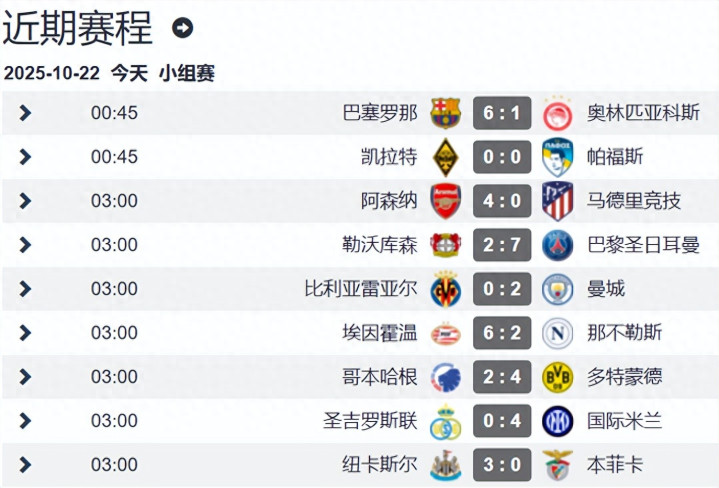 欧冠联赛阶段第3轮首日的9场比赛已经全部战罢,各大豪门球队纷纷开始“屠杀”模式,意甲卫冕冠军那不勒斯大比分输荷甲球队真是脸都不要了,英超三队全部获胜。