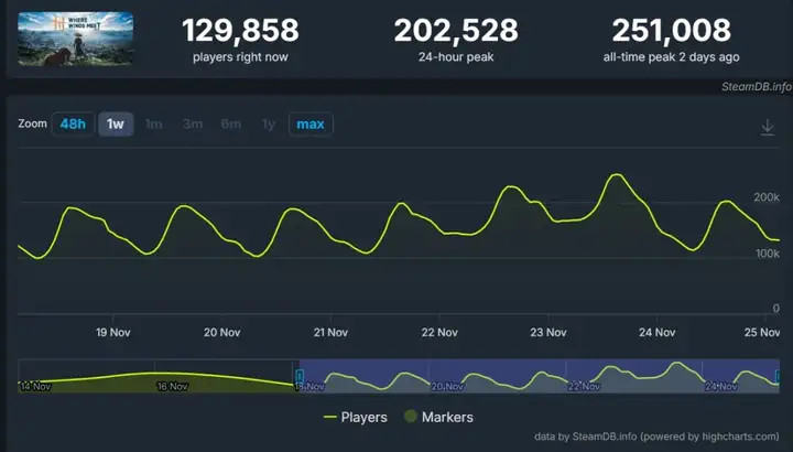 在上线后的第二个周末,《燕云》Steam同时在线人数已冲到了25.1万,刷新了国际服在线人数新高,成为目前Steam同时在线人数第一的中国游戏。在网易Q3财报中,游戏也得到了丁磊点名表扬:“我们是国内唯一一个把中国题材带到海外成功的大型游戏公司,我指的是《燕云十六声》,这是一个完完全全的中国武侠题材。”