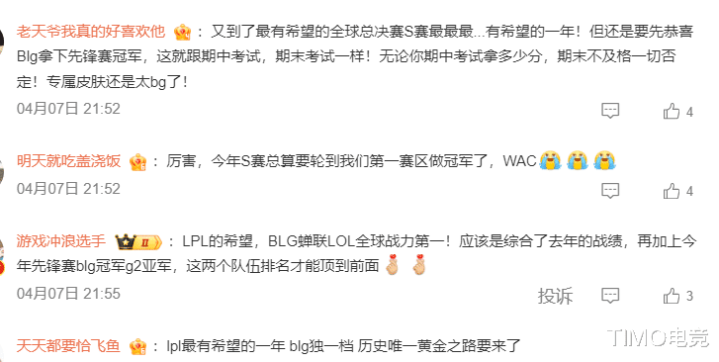 当然,“毒奶榜”的诅咒也不是白叫的。有虎扑网友已经开始慌了:“坏菜,毒奶榜榜首了。”立刻有人接:“没事的,大丹回到联赛会开始搞科研的。”最真实的一条评论是这样的:“没用,当年四强三包一不也是被狠狠抽了。”话虽扎心,但确实是事实。LPL被LCK压在头上太多年了,哪怕现在BLG拿了先锋赛冠军,哪怕战力榜三连第一,依然有人不敢把话说满——不是不够相信,只是过往伤得太深。