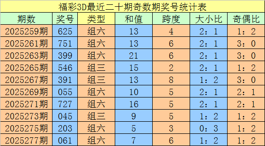 上期回顾:福利彩票3D第2025278期开出奖号629。奖号类型:组六,大小形态:大小大,奇偶形态:偶偶奇。