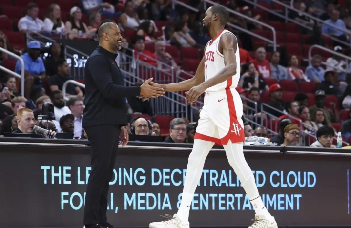 火箭首发:杜兰特、史密斯、申京、阿门、奥科吉。
