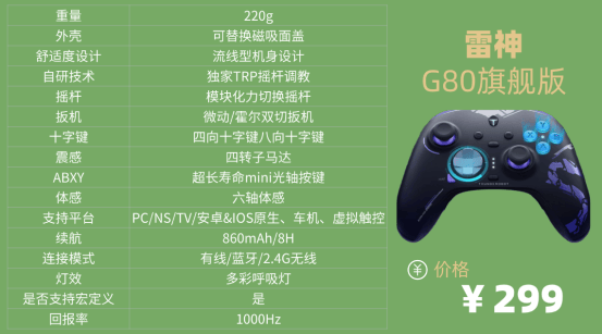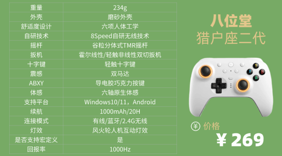 连接上也算“全家桶”,PC、Switch、Steam都能直接用,固件更新后延迟优化得很明显,操作反馈快、准、稳。另外附带三套不同高度的摇杆帽、两种D-pad,能针对不同游戏场景自行更换,体感操作和180°防滑握把也让激烈操作更稳。配套APP可调摇杆灵敏度、死区、宏编程等细节,再加一个RGB磁吸底座,算是颜值与功能都拉满的那种。小缺点是扳机锁行程稍长,玩需要极短触发的射击时会有点意犹未尽,摇杆帽贴合度也还能更好。续航方面,一次性可以使用10小时,一般连续玩几天都是可以的。