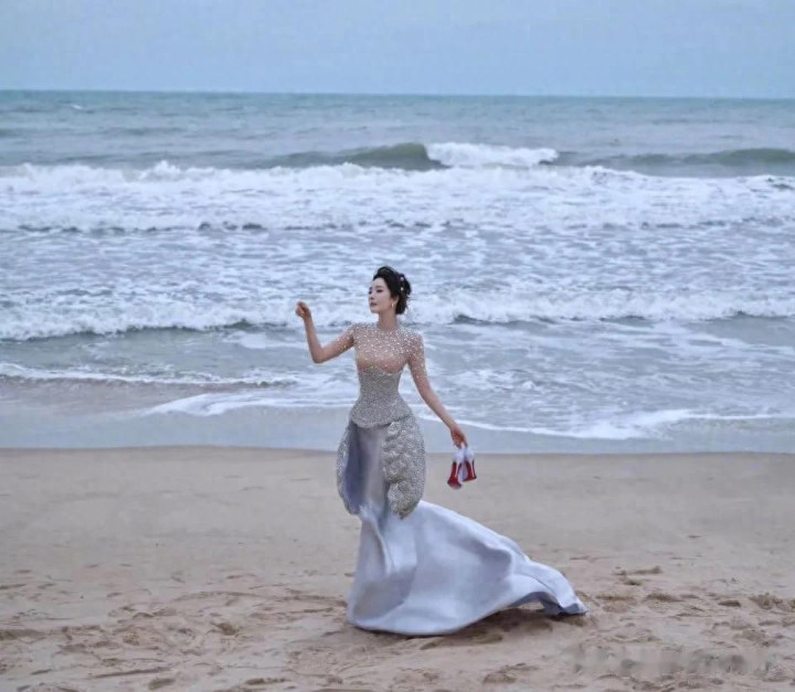 杨幂站在海边拍起了时尚大片,她穿的这条礼服来自韩国品牌Miss Sohee的2025春夏高级定制系列,裙子以紫色缎面和珍珠蚌壳刺绣为元素,还是比较适合这种海边活动的主题的。