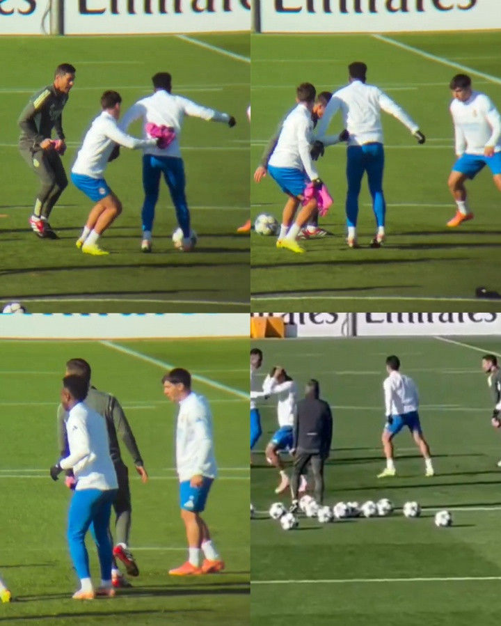 气氛不错啊! 阿隆索加入球队抢圈行列, 想抢维尼修斯结果被穿裆